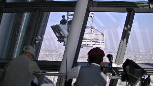 そして350、345、340mの3フロアある展望デッキの350mのフロアに着くと真ん前にすぐ展望 窓。 |