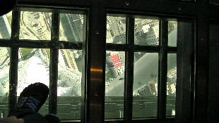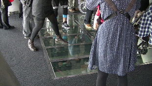 340mフロアには直下をのぞけるガラス床が2ヶ所ありこれは鉄柱側。 |