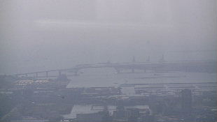 東京ゲートブリッジ。風がないので遠くは霞む。 |