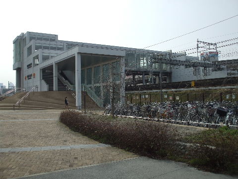 | 2012年3月25日。名鉄犬山線を跨ぐ為にこうなった、この高さのせいで余計巨大に見える駅。これで当初予定通りい