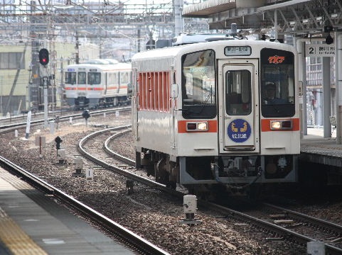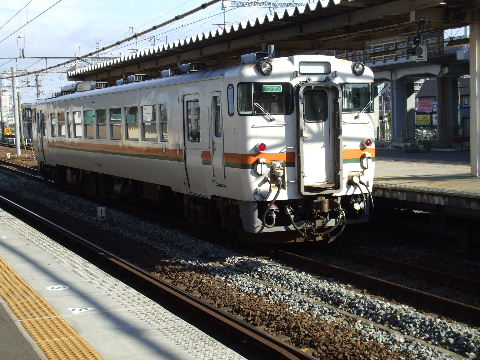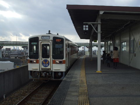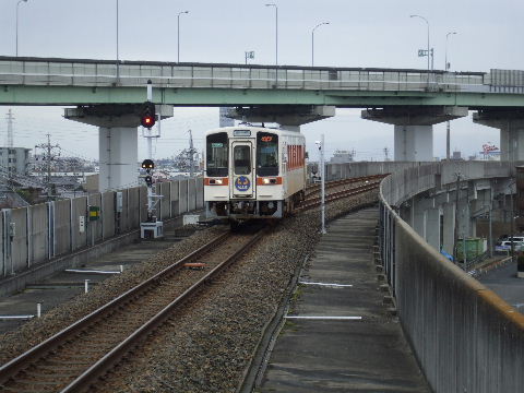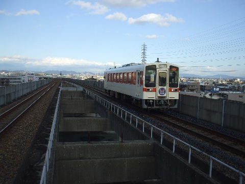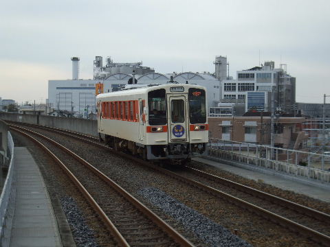 | 2012年01月22日。尾張星の宮駅に接近してくる。後方、少し西にキリンビールの工場がある。見学してビールを飲