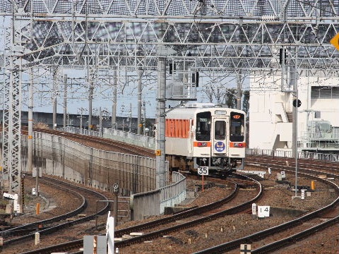 | 2012年01月23日。東海道線、稲沢線をカーブしながら跨いで東へ進行方向が変わっていく。