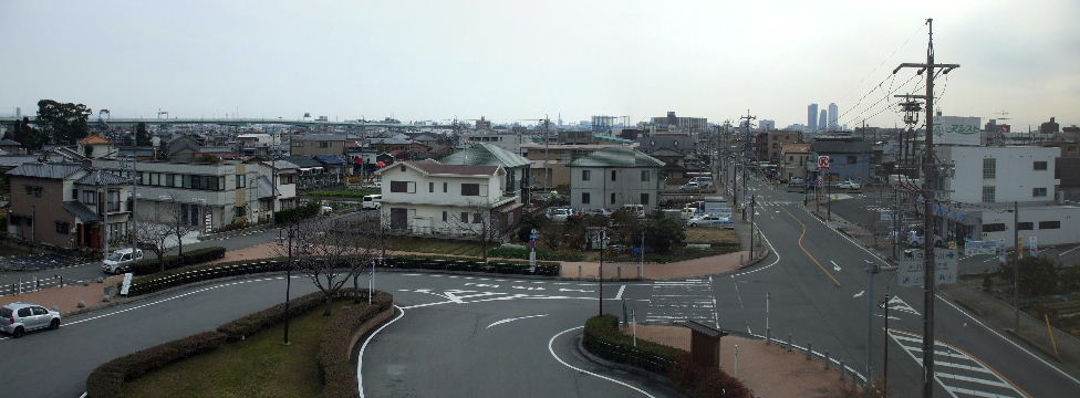 | 2012年01月14日。味美駅を出発。小牧線の高架橋を跨いだ先から下り坂になっているのが判る。