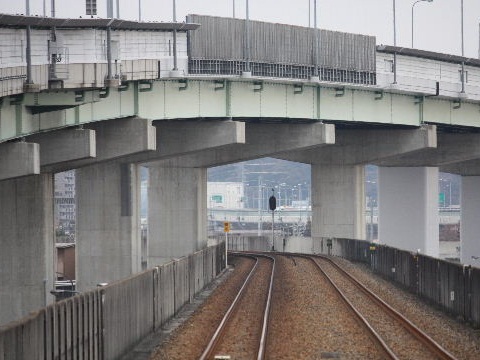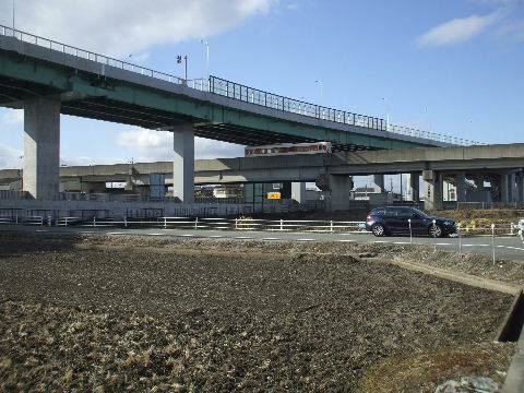 | 2012年03月25日。高速道路と共に名鉄小牧線を跨ぐ。 |