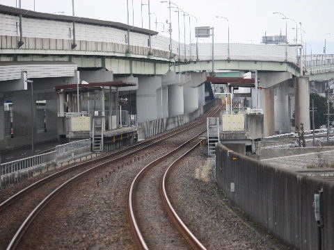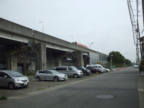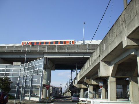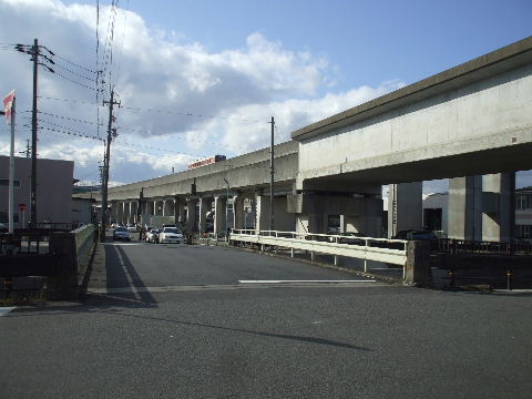 | 2012年01月22日。尾張星の宮駅を出ると前方に名古屋高速清洲線の高架橋が近づいてくる。 |