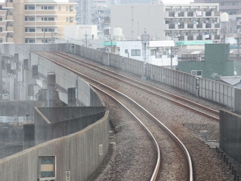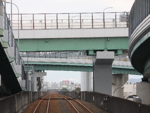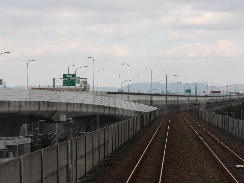 る所くらいしか通る列車が見える所がない。また高速道路側の車窓は高速道路の壁だけになる。