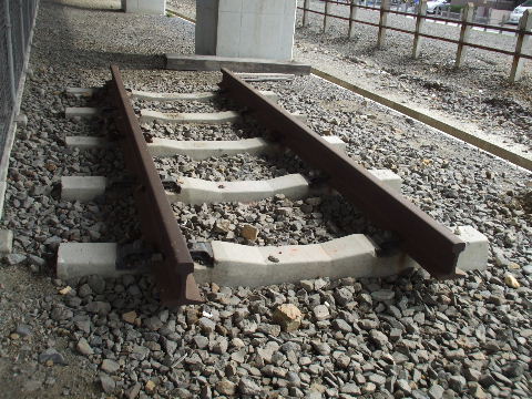 | 2012年03月08日。通路脇に枕木五本分の線路が敷かれている。何か深い意味があるに違いない。