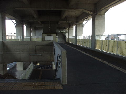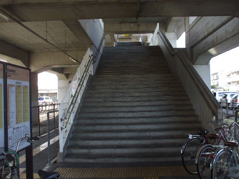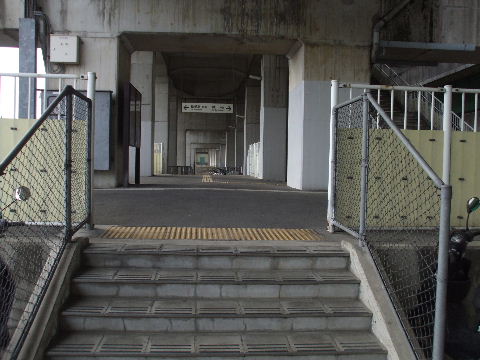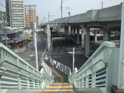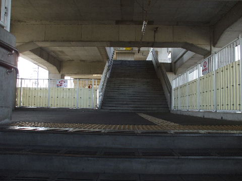 | 2012年03月08日。東側、出来ていた高架橋末端部分に作られたJR勝川駅方向への階段。JRが地平を走っていた頃は