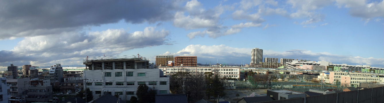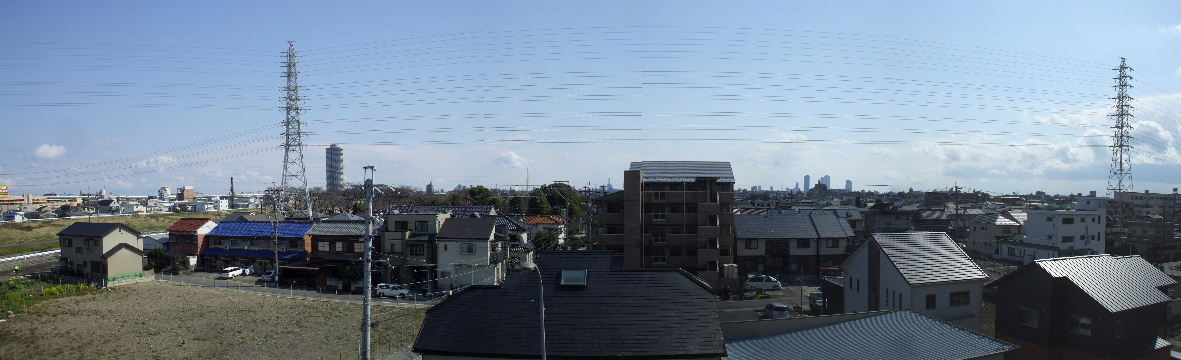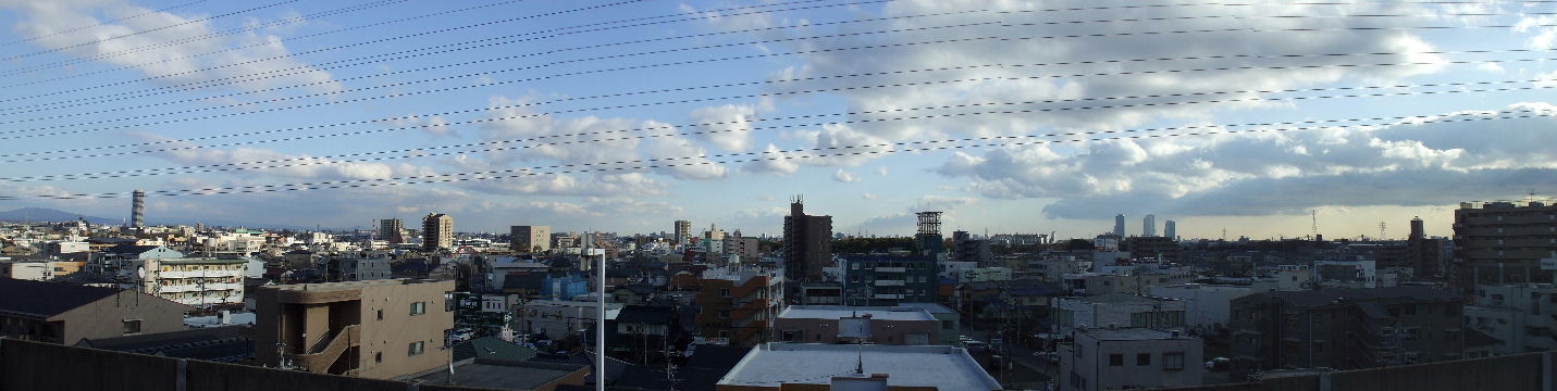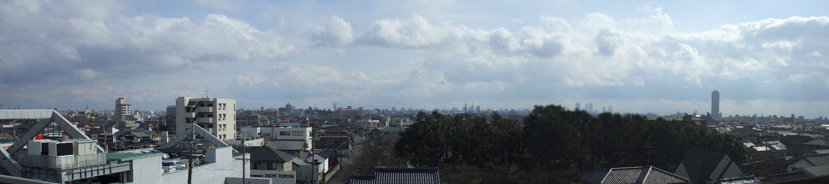 | 2012年01月23日。南、名古屋都心方向を見る。右寄り奥に名古屋駅前のビルが見える。