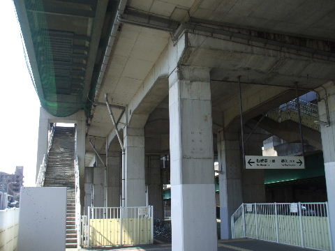 | 2012年03月08日。西側、旧国道19号線沿いにある歩道橋のような上り口。
