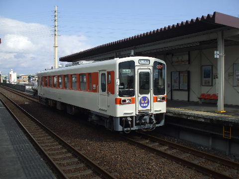 | 2012年01月22日。稲沢線上の短いホームにさらに短い一両編成の列車が停車中。手前が尾張星の宮方向。 |