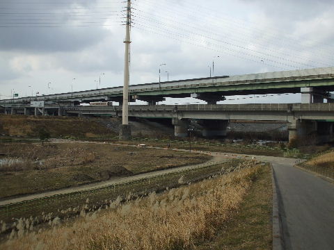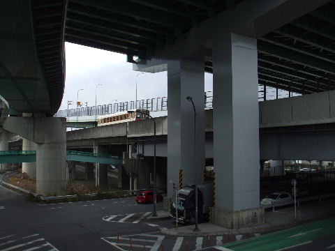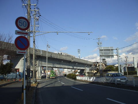 2012年01月23日。下を走る国道22号線と高速道路の間を抜ける。 |