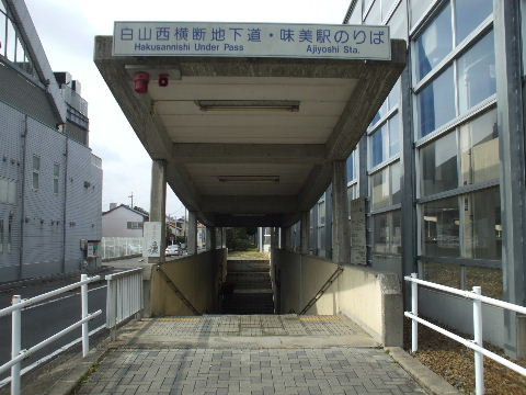 | 2012年01月28日。国道302号線の横断地下道から入るようになっている。こちら(南)側からだと駅は遮音壁のすぐ中