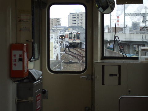 | 2012年01月22日。停車中。枇杷島駅以外はバスのように後扉から乗り整理券をとる。画像の整理券は比良駅からの
