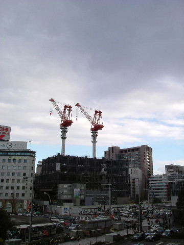 | 2005年12月4日。先週、今週とクレーン が一機だけで、もう一機は台座だけが見 える。 |