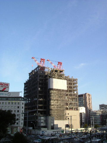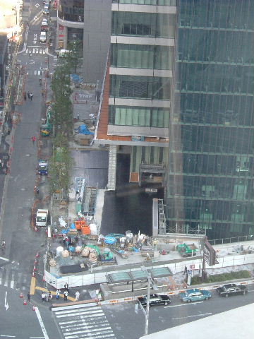 2005年10月16日。低層棟の鉄骨が手前 の敷地いっぱいの所まで広がってきてい る。 |