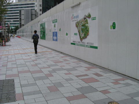| 2005年10月2日。 | 2005年9月11日。 | 2005年10月2日。万博開催中、現場の塀 に並んでいたポスターもきれいさっぱり剥 がされてすっきり。 |