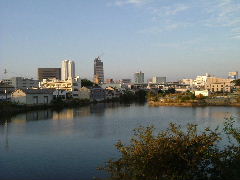 2005年10月16日。中川運河の小栗橋から 見てみたが同じ所からの広い範囲で見た 写真をもう一枚。拡大。 |