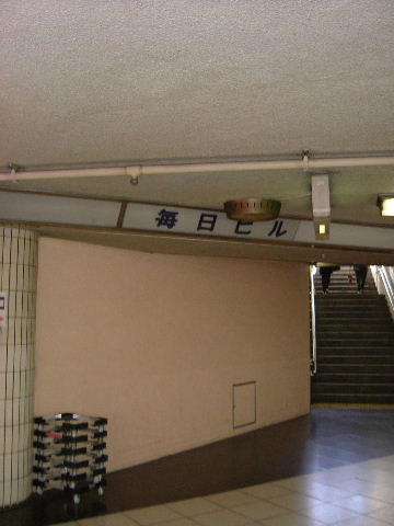 | 2006年2月18日。メイチカから旧毎日ビル 地下への出入口部分で旧ビルに比べて建 ち位置が後退した分、地下道を延ばす工 事が始まっている。 |