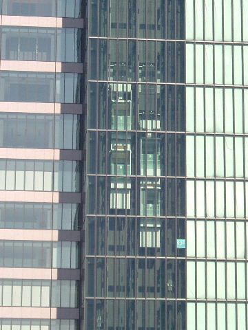 2006年8月11日。目隠しが全部外されて エレベーターが4機全て見えるようになっ た。 |