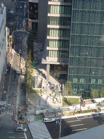 | 2006年10月1日。オフィス部分がオープン したがまだ周辺整備が続いている。日曜 日で人も殆ど動いていない。 |