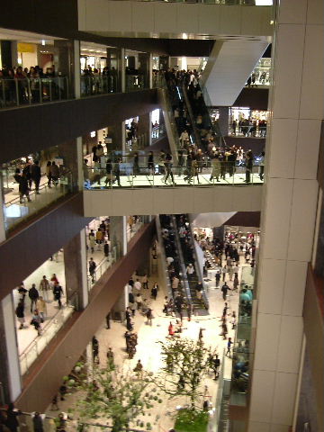 2006年10月15日。オフィス部分だけの 開業なので一般人が入れるのは名駅通 沿いの地下一階のビルに沿った一部吹 抜けになっている所だけ。 |