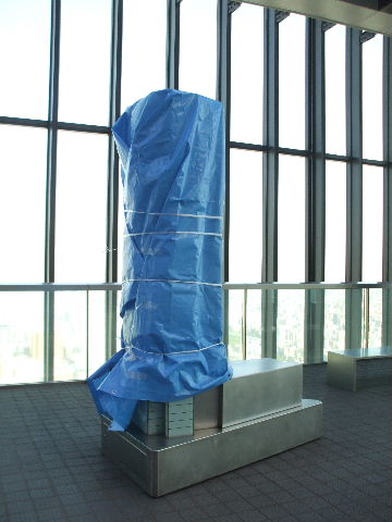 | 2006年8月5日。二階建てエレベーターが 見えるようになった。右半分はまだ目隠し されている。 |