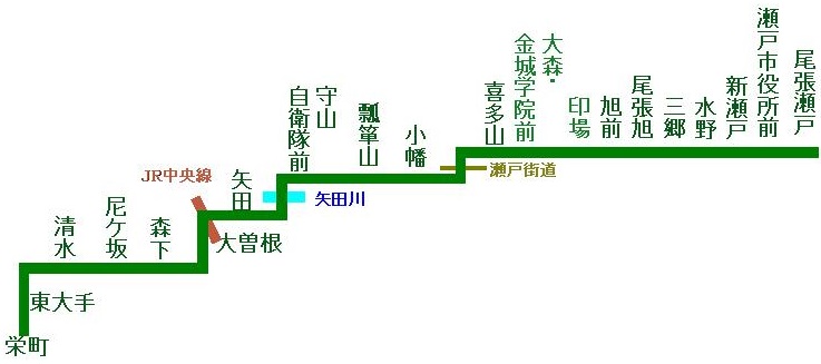 名鉄瀬戸線の栄町駅から尾張瀬戸駅まで線路に沿って歩いてきたので画像を適当に並べておきます。線路の距離で20.6㎞、線路沿いに道のないところがあるので歩く距離はもう少し長くなる。