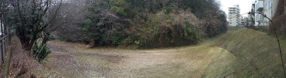 | 11:12名古屋城外堀南東角。昔はここを瀬戸線が通っていて有名な急カーブがあったところ。左(西)へ行くと堀川駅へ。今は右の堀の地下を北へ向かう。 |