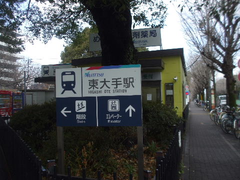 11:21出来町通を横断するとすぐ最初の駅、地下にある東大手駅 入口前を通過。 |