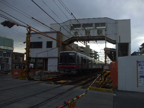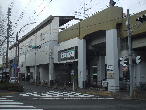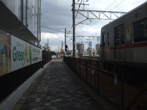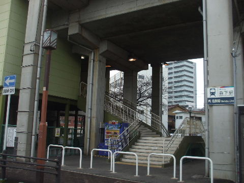 14:17線路北側に沿って暫く東進すると小さいが駅ビルのある大森・ 金城学院前駅が見えてくる。 |