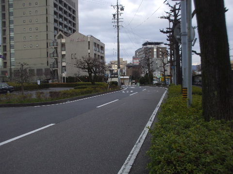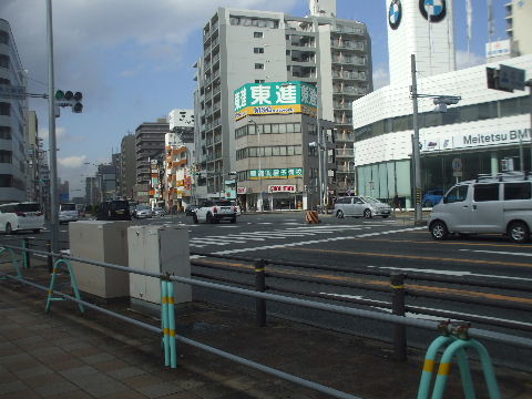 | 11:09外堀通。ここで瀬戸線は右(東)へ少しずれるので右折。 |
