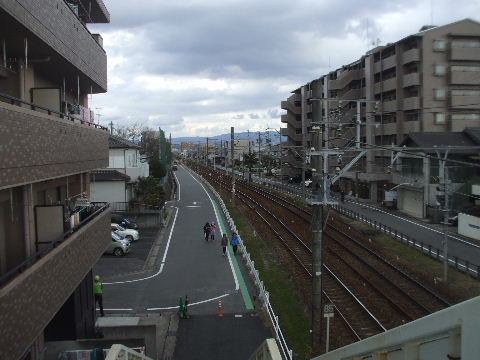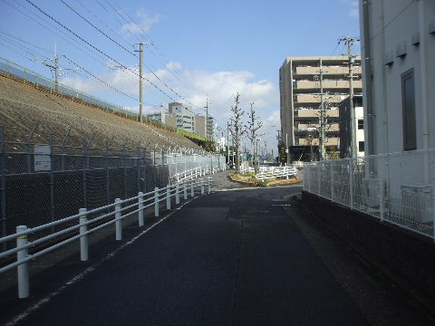 13:08線路手前の階段を上がり線路沿いに出る。 |