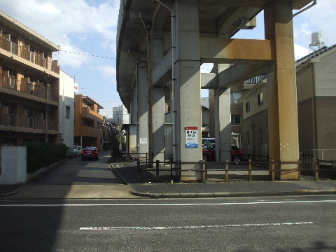 | 13:18少し進むとガイドウエイバスの高架橋をくぐる。 |