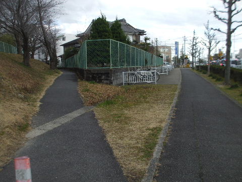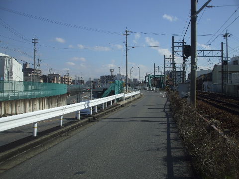 13:07矢田川を渡るために瀬戸街道の矢田川橋を通ったがこの先 瀬戸街道と瀬戸線は少し間隔をあけて進むので線路沿いに出る ために橋を渡ってすぐ右折する。 |