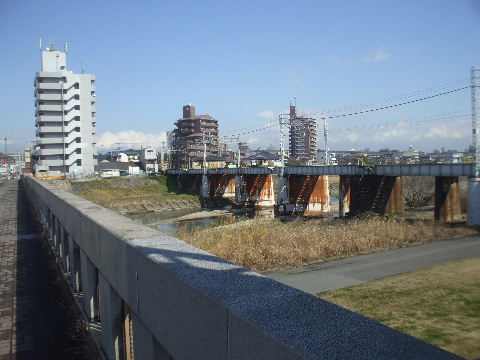 12:59鉄橋の瀬戸線と並んで、この先瀬戸線と並行して進む瀬戸 街道を跨ぐ。 |