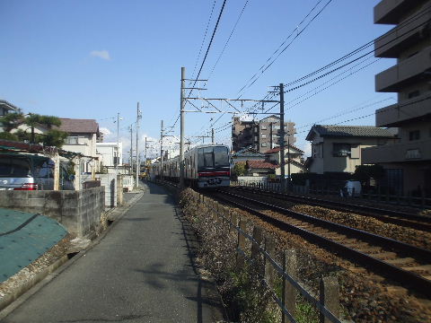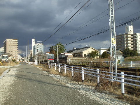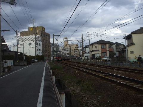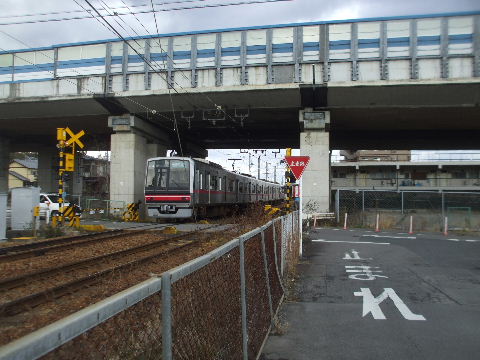13:54瀬戸線の少し北側を並行していた瀬戸街道を横断。ここから 瀬戸線が北側になる。 |