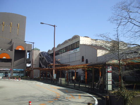 15:19北側の駅前広場。駅は橋上駅舎。 |