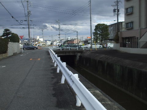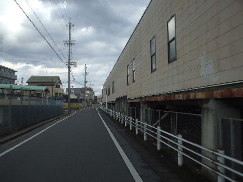 16:21線路に近づくために前方に愛知環状鉄道の高架橋が見えて きたところで左折。 |