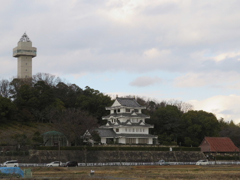 15:07少し進むと左に旭城とスカイワードあさひが見えてくる。どちら も最上階が展望室になっている。 |