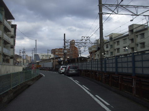 12:32通りを線路近くの横断歩道で横断しさらに線路沿いに進む。 |
