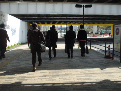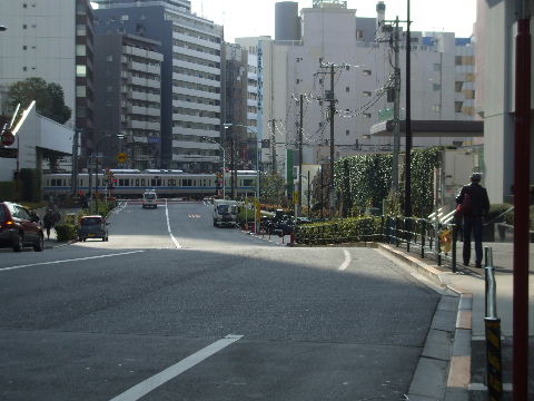 | 9:03小田急が新宿駅の地下から出てきた所にある踏切を渡る。 |