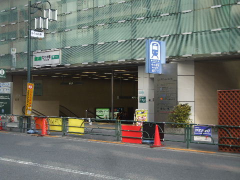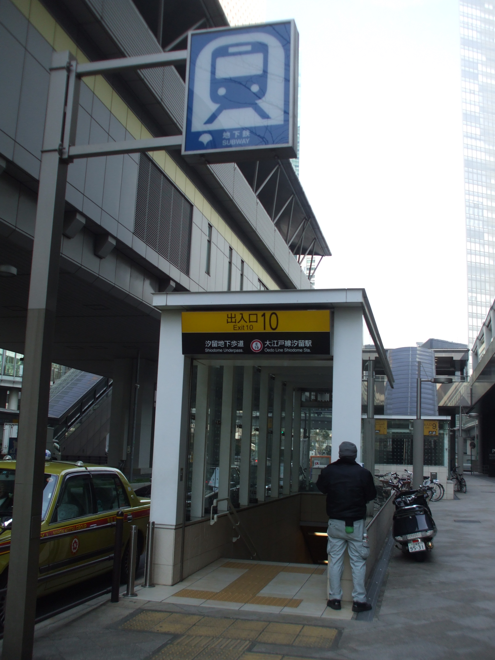 10:59汐留駅入口前を通過。上にはゆりかも めの汐留駅。 |