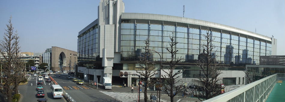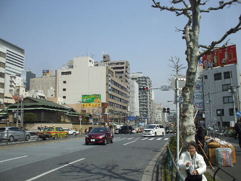 13:28総武線をくぐるとすぐ両国駅。江戸東京博物館の入口。 |