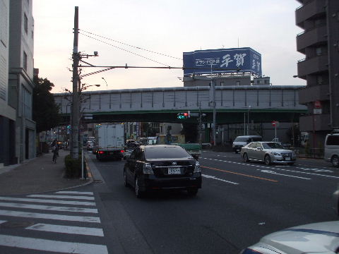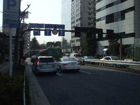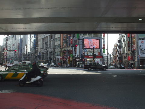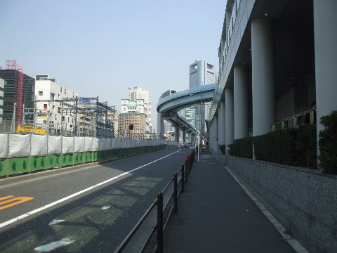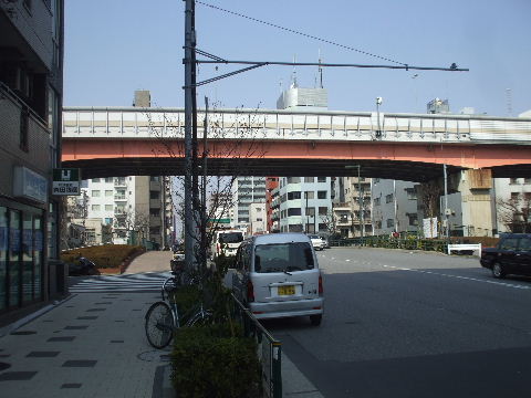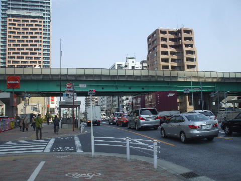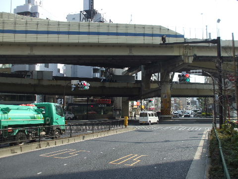 10:21麻布十番駅のある新一の橋交差点通過。頭上の高速道路 が圧迫感。 |