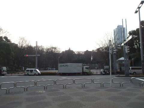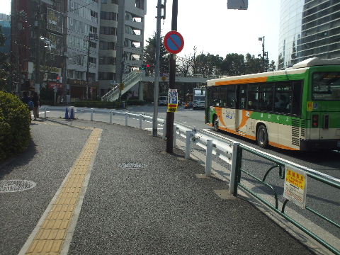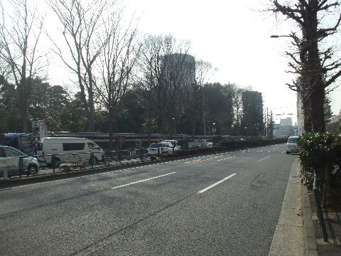 | 9:36信濃町駅前歩道橋から南、進行方向を見る。 |