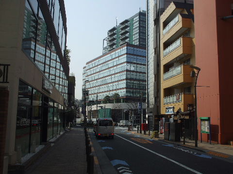 | 9:50青山一丁目の一つ先で外苑東通が左へ折れ、一筋東へずれる。地下鉄は左へ斜めに移動。 |
