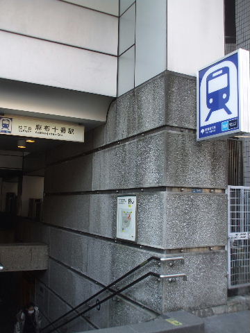 10:06高速道路が重苦しい六本木交差点。ここで左斜めに進む 外苑東通から外れ地下鉄は右斜めの細い道の下を行く。 |