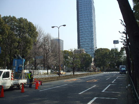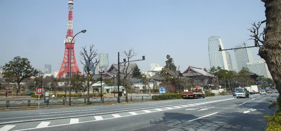 | 10:39増上寺前を北へ進む。この道の地下には都営三田線も走っている。 |
