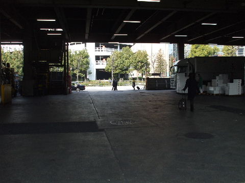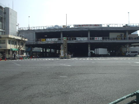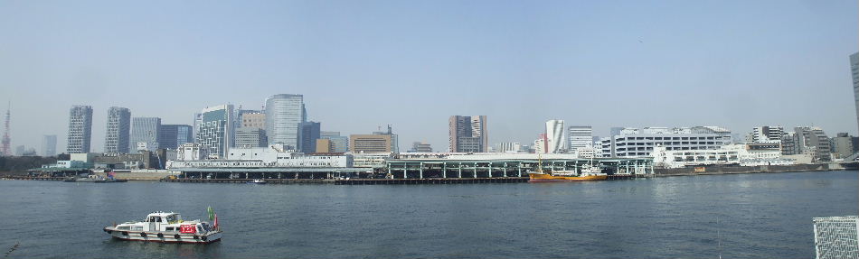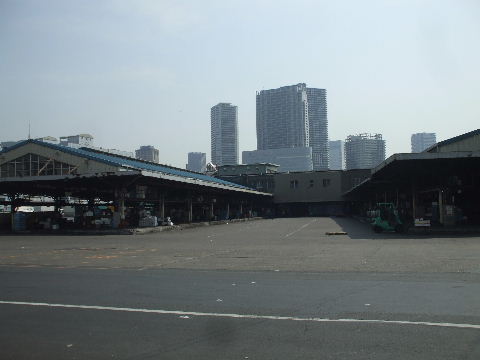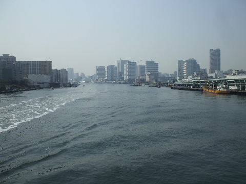 | 11:53対岸から築地市場を見る。移転することになっているのでその後はまたここに超高層マンションなんぞが並ぶか、はたまたオリンピックの何かが出来るのだろうか。 |